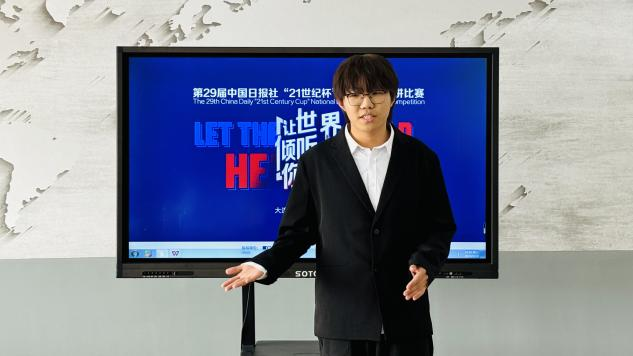 在命題演講環(huán)節(jié),選手們斗志昂揚(yáng),信心滿(mǎn)滿(mǎn),以極具感染力的肢體語(yǔ)言和自信流利的英語(yǔ)口語(yǔ)展現(xiàn)了對(duì)傳統(tǒng)文化復(fù)興的理解,將自己的所見(jiàn)所聞與傳統(tǒng)文化復(fù)興結(jié)合起來(lái),從內(nèi)蒙古那達(dá)慕大會(huì)到湖南瀏陽(yáng)煙花,從南京秦淮河到安徽黃梅戲,以小見(jiàn)大,談古論今。