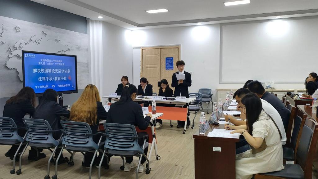 觀古今而生慧,論縱橫而明智。為加強英語學院精神文化建設,鍛煉學生的思辨能力、語言表達能力和團隊協(xié)作能力,6月20日,英語學院第九屆“火焰杯”中文辯論賽決賽于勵業(yè)樓愛爾蘭中心成功舉辦。大連外國語大學國際關系學院分團委書記侯培巖老師、歐洲語言學院輔導員王靜業(yè)老師、英語學院2021級輔導員達尼亞爾江·亞力坤江、英語學院2023級輔導員吳曼、校辯論隊成員余婷同學擔任本次比賽的評委。英語學院黨委副書記兼紀委書記孫碩作為特邀嘉賓出席本次活動。