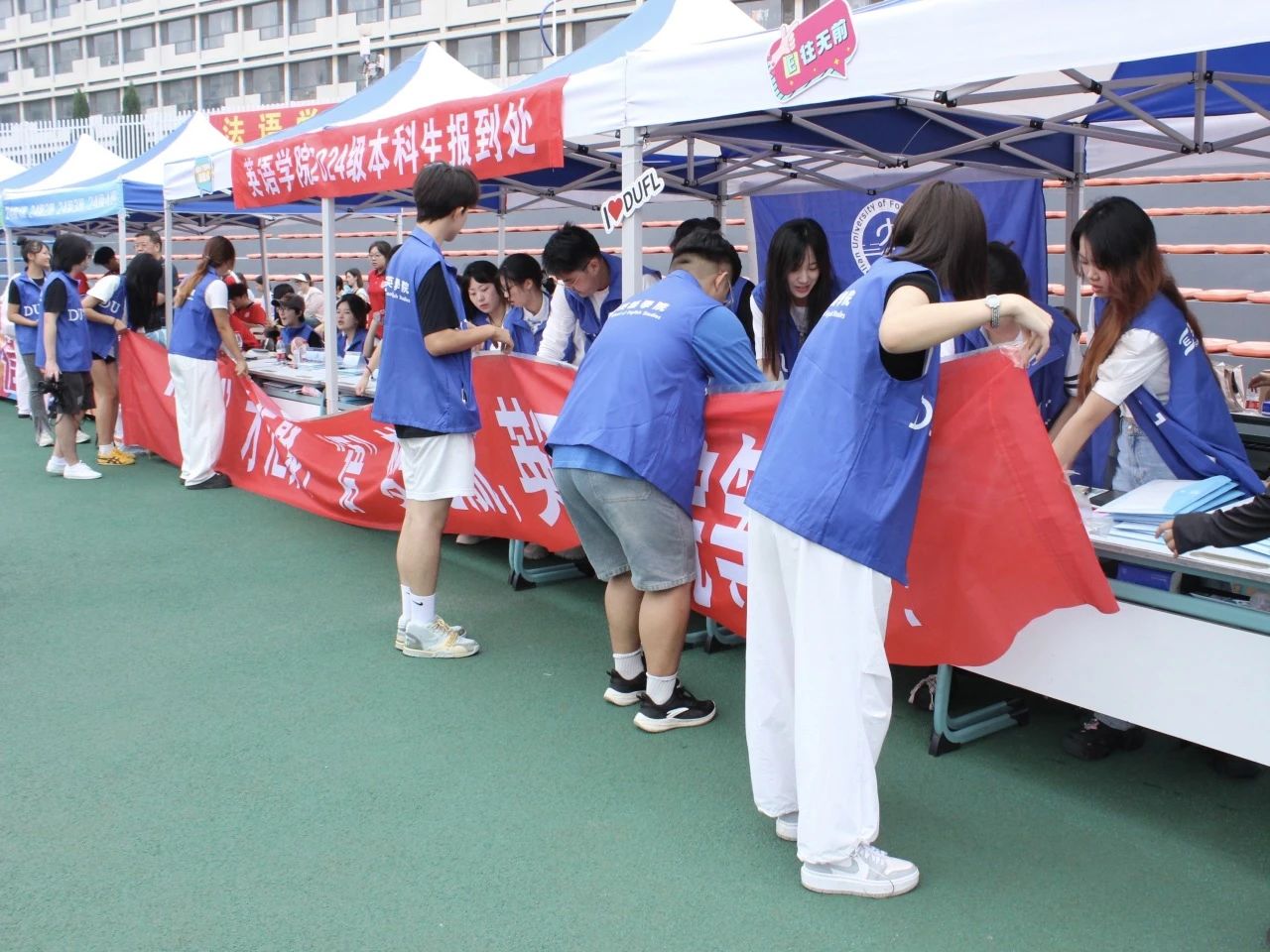 九月秋風(fēng)恰送爽,明陽湖畔正揚(yáng)帆。值此我校建校60周年校慶,英語學(xué)院迎來了326名本科生新生和72名研究生新生。為歡迎各位新同學(xué)的到來并幫助他們更快地適應(yīng)新環(huán)境,英語學(xué)院于9月1日有序開展迎新工作。學(xué)院上下高度重視、周密部署、創(chuàng)新舉措,積極配合學(xué)校相關(guān)工作要求,憑借詳盡的工作安排與高度的服務(wù)意識為新生報到保駕護(hù)航,力求做到迎“新”的同時更迎“心”,用飽滿的熱情歡迎英語學(xué)院2024級的新同學(xué)們。