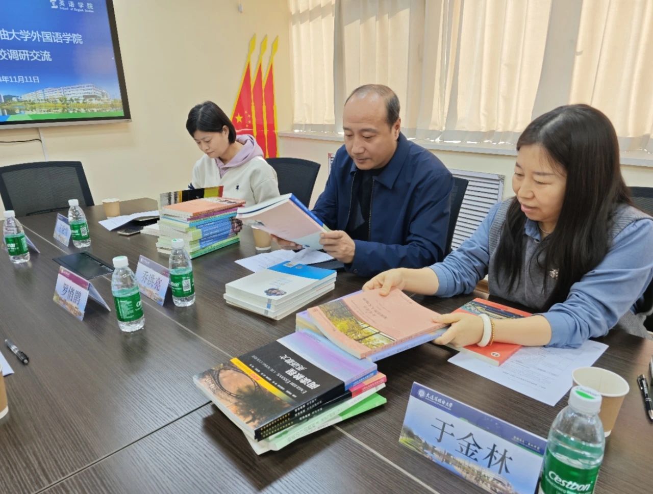 喬洪亮一行還著重了解了內(nèi)容語言融合教育理念指導(dǎo)下的英語專業(yè)課程體系,以及英語學(xué)院在教學(xué)實(shí)踐中開發(fā)的系列教材。雙方共同分享了在師資培養(yǎng)和專業(yè)建設(shè)方面的改革創(chuàng)新經(jīng)驗(yàn)。
