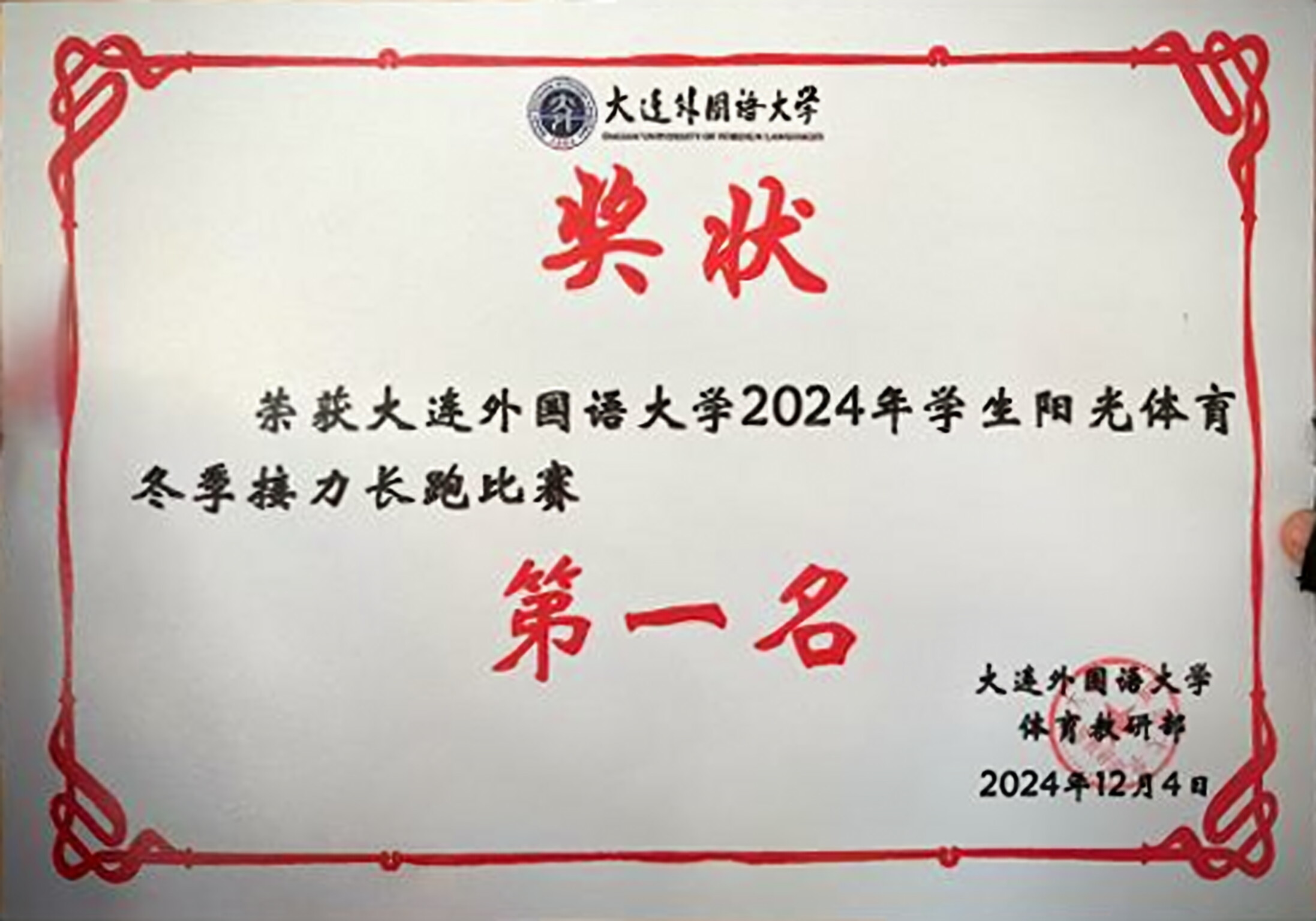 12月4日下午,大連外國(guó)語(yǔ)大學(xué)2024年學(xué)生陽(yáng)光體育冬季接力長(zhǎng)跑比賽正式拉開(kāi)帷幕。經(jīng)過(guò)激烈角逐,英院學(xué)子憑借其強(qiáng)勁的實(shí)力,最終為學(xué)院取得了“團(tuán)體第一名”的好成績(jī)。