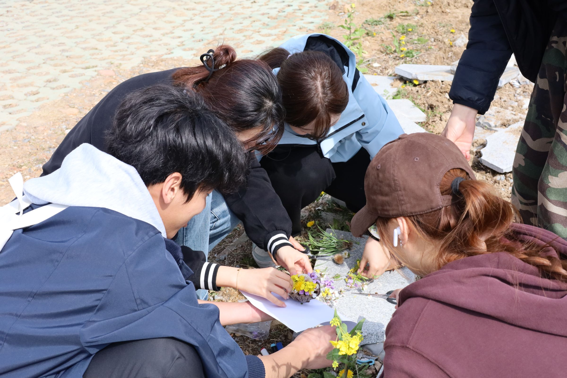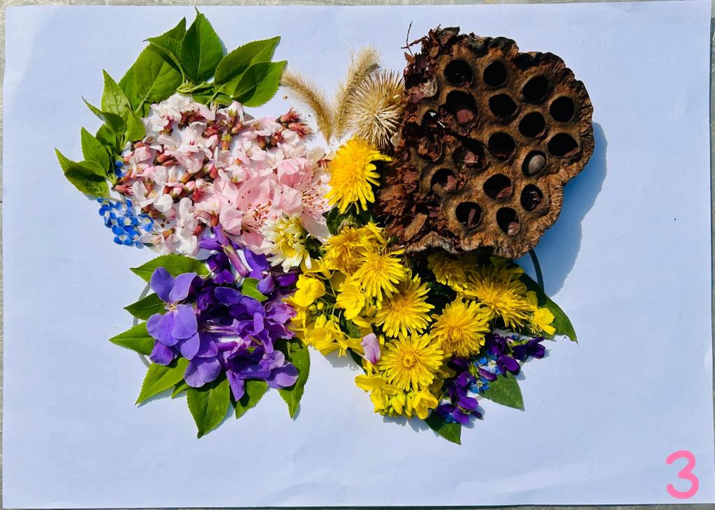 清掃結(jié)束后,同學(xué)們以沿途采集的落葉、零落花瓣、凋萎草莖等自然掉落的植物材料,通過裁剪、疊壓、拼貼等方式轉(zhuǎn)化為創(chuàng)意作品。一幅幅充滿創(chuàng)意的植物拼貼畫不僅展現(xiàn)了植物材料的全新藝術(shù)可能,還蘊(yùn)含著創(chuàng)作者對自然的獨(dú)特理解與熱愛。