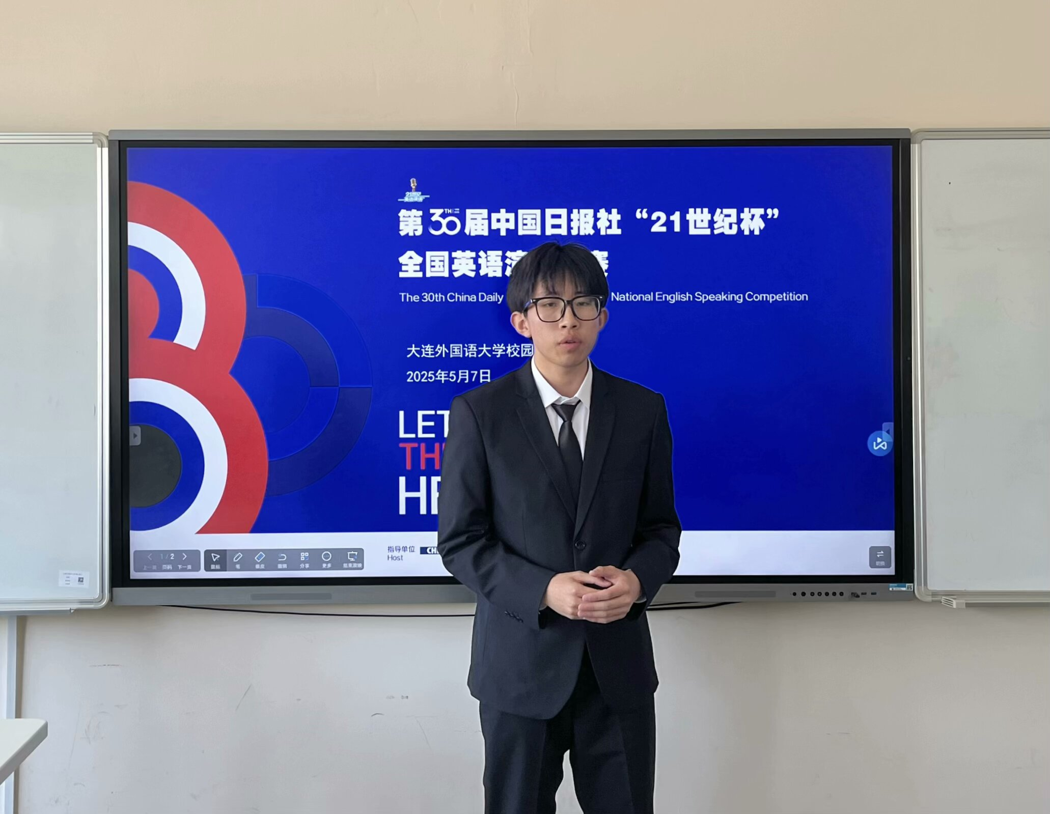 經(jīng)過激烈角逐,英語學(xué)院尹赫威獲得特等獎直通國賽,英語學(xué)院彭力仁、高級翻譯學(xué)院常藝千兩位選手獲一等獎,三位同學(xué)將代表大連外國語大學(xué)參加遼寧省決賽。最后,大賽評委為選手們頒獎并送上由衷的祝賀,并勉勵未晉級選手持續(xù)精進技藝、夯實專業(yè)基礎(chǔ),以精益求精的態(tài)度砥礪前行、再創(chuàng)佳績。