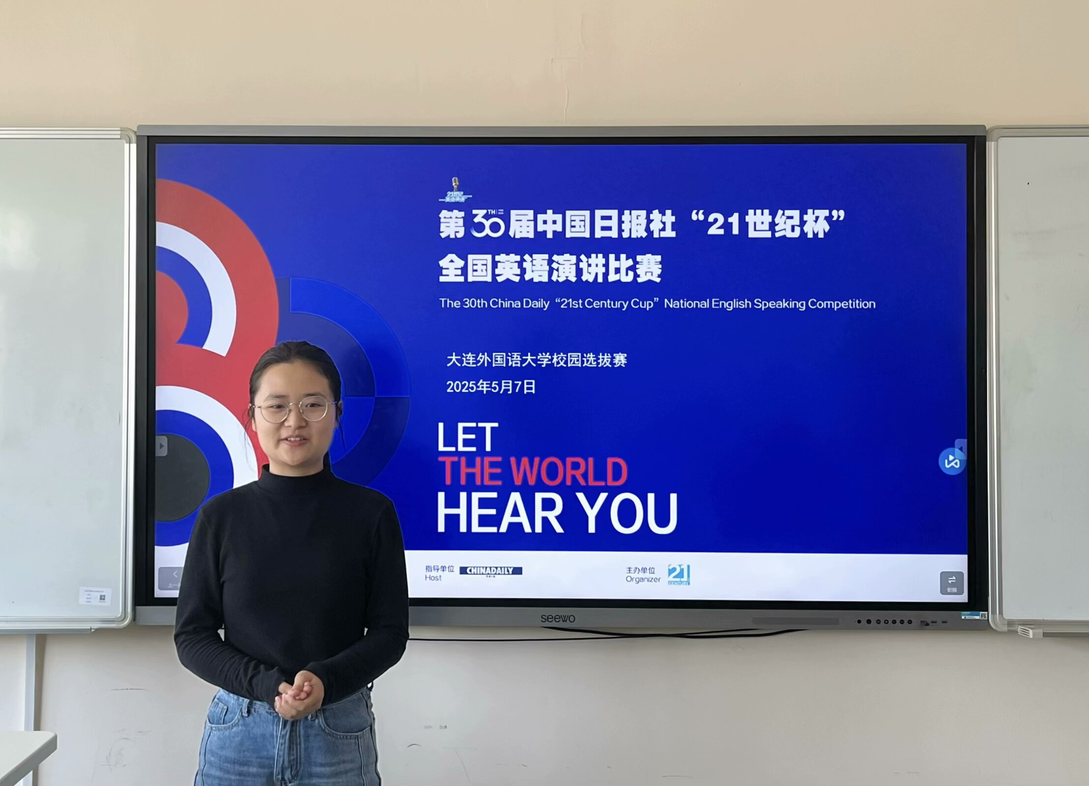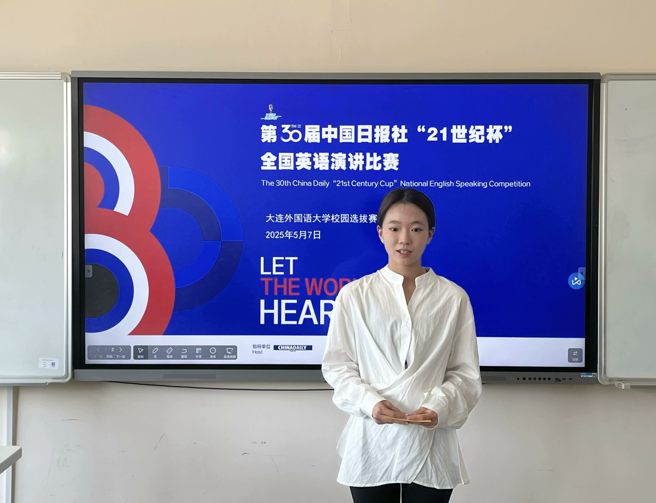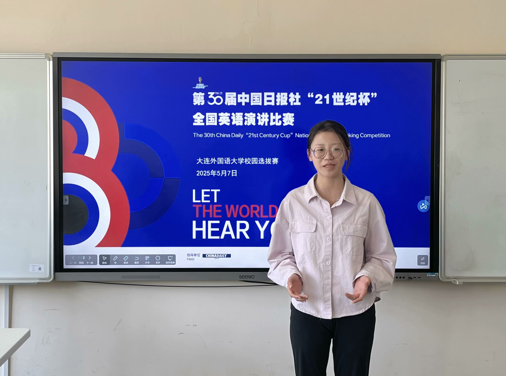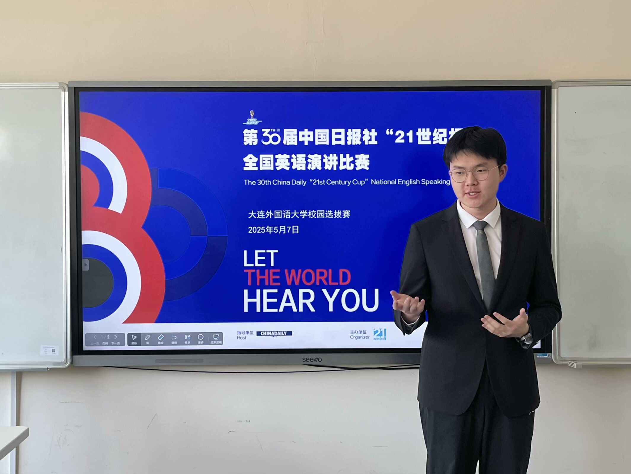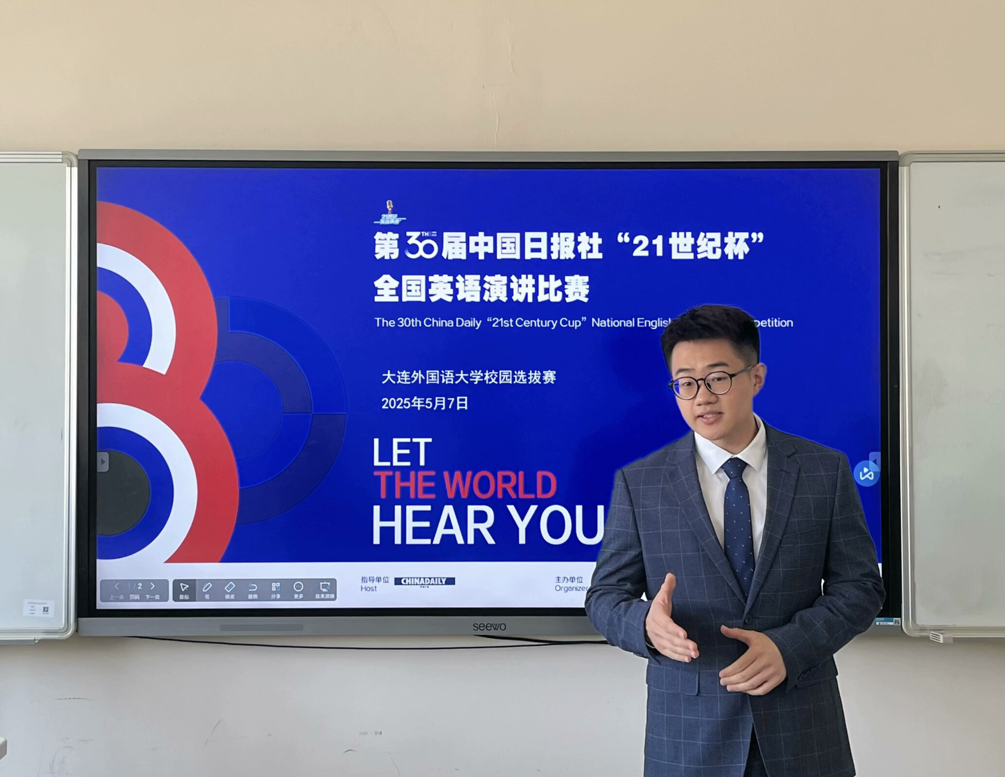 為提升我校學(xué)生語言綜合運用能力,培養(yǎng)高素質(zhì)復(fù)合型英語人才,5月7日,英語學(xué)院于勵業(yè)樓舉辦第30屆中國日報社“21 世紀杯”全國英語演講比賽大連外國語大學(xué)校園選拔賽。本次復(fù)賽由英語學(xué)院教師石文瑞主持,公共外語部教師韓丹、英語學(xué)院教師黃滔、高級翻譯學(xué)院教師陳婧、商學(xué)院教師李群、軟件學(xué)院教師邵林擔任評委。