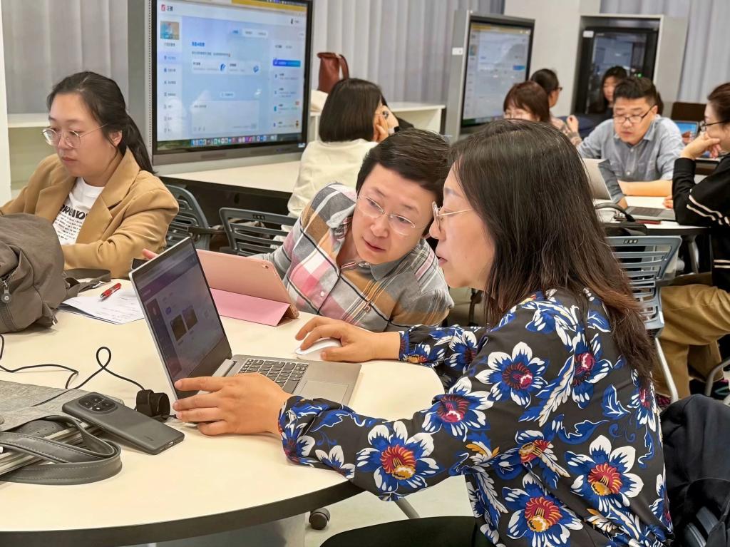 在實(shí)操環(huán)節(jié)中,教師們?cè)诩夹g(shù)人員的指導(dǎo)下,親自上手操作智慧教學(xué)平臺(tái),嘗試運(yùn)用新工具設(shè)計(jì)互動(dòng)課件、布置個(gè)性化作業(yè)并開(kāi)展模擬課堂練習(xí)。大家積極交流操作心得,現(xiàn)場(chǎng)學(xué)習(xí)氛圍熱烈。