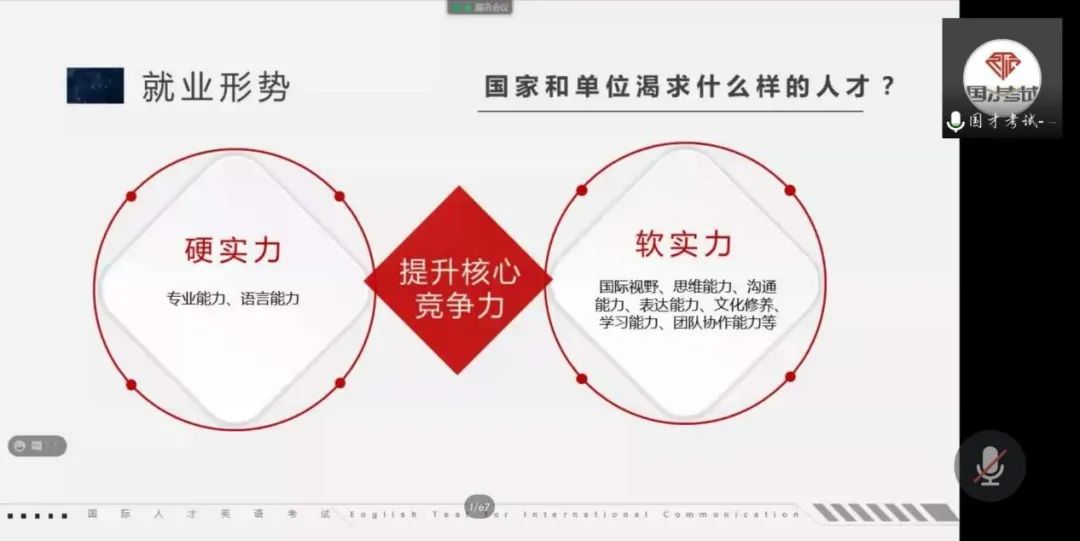 會議伊始,曲院長為同學(xué)們介紹了國才考試的重要性以及英語專業(yè)培養(yǎng)方案中關(guān)于國際人才英語考試轉(zhuǎn)換學(xué)分的規(guī)定。接下來,朱芳媛老師對國才考試的具體情況進(jìn)行了詳細(xì)的介紹。期間,朱老師提出就業(yè)的必需素質(zhì)為軟硬實力兼修,且更看重口頭溝通與書面溝通等方面的個人能力。近年來,高校應(yīng)屆畢業(yè)生數(shù)量持續(xù)增加,社會對人才個人能力要求更高。在如此嚴(yán)峻的就業(yè)形勢下,國才考試應(yīng)運(yùn)而生,致力于提高畢業(yè)生就業(yè)率,為畢業(yè)生敞開一扇大門。國才考試分為初級、中級和高級三個級別,各級別所需能力,考試內(nèi)容不盡相同。學(xué)生可根據(jù)自身情況選擇考試級別,這樣的考試模式為考生提供了廣大的選擇面。國才考試的優(yōu)勢在于面向職場,企業(yè)認(rèn)可。國才考試與國內(nèi)外知名人力資源企業(yè)達(dá)成戰(zhàn)略合作,為國才證書持有者提供優(yōu)先錄用的機(jī)會。國才內(nèi)推項目豐富多樣,如志愿者項目-國家級會議,行業(yè)內(nèi)頂尖峰會和學(xué)術(shù)交流,體現(xiàn)國才內(nèi)推項目的國際化和全球化性質(zhì)等。除此之外,國才內(nèi)推新型職場類欄目,通過視頻網(wǎng)站傳授各種職場面試技巧,打造自身就業(yè)競爭力。在接下來的經(jīng)驗分享會上,來自哈爾濱工業(yè)大學(xué)英語專業(yè)的孟德淳同學(xué)分享了他參加國才考試的經(jīng)歷以及在巴厘島作為國際義工時的感悟。他表示,參加國才舉行的志愿活動,不僅可以提升能力,還能收獲友誼。他鼓勵同學(xué)們對就業(yè)作出明確規(guī)劃,盡早確立今后的學(xué)習(xí)目標(biāo),最后也給予同學(xué)們美好的祝愿。