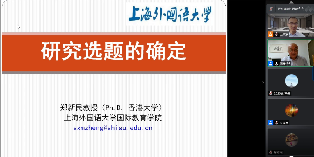 12月18日,上海外國語大學(xué)鄭新民教授應(yīng)我校科研處與英語學(xué)院邀請(qǐng),通過騰訊會(huì)議平臺(tái)為我院師生做了題為“疊葉與高節(jié),俱從毫末生——談研究選題的確定”的學(xué)術(shù)講座。本次講座為我院外語教育系列講座之一,由王成東副院長(zhǎng)主持,我院部分教師和碩士研究生共同聆聽了此次講座。