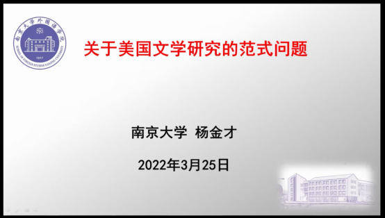 3月25日,南京大學(xué)楊金才教授應(yīng)我校學(xué)科發(fā)展規(guī)劃處和英語學(xué)院邀請,通過騰訊會議平臺為我院師生做了題為“關(guān)于美國文學(xué)研究的范式問題”的學(xué)術(shù)講座。本次講座由呂春媚院長主持,我院部分教師、碩士研究生共同聆聽了此次講座。