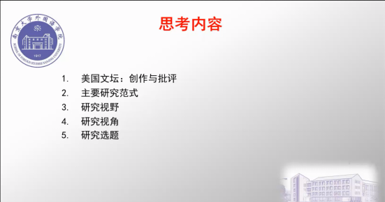 楊金才教授從美國文壇的創(chuàng)作與批評、主要研究范式、研究視野、研究視角與研究選題五部分對美國文學(xué)研究進(jìn)行了梳理和分析。