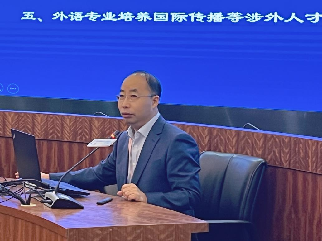 7月29日上午,常俊躍教授擔任了2023國際英語教育中國大會“外語學科院長/系主任國際傳報論壇”主旨報告嘉賓,以“明目標,固基礎,通中外,強實踐——對培養(yǎng)國際傳播能力的思考與實踐”為題進行主旨報告。常俊躍教授在發(fā)言中倡導變革外語外語教育理念,更新課程體系,開發(fā)全新教材,改進教學方法,強化實踐訓練,系統(tǒng)培養(yǎng)國際傳播能力。