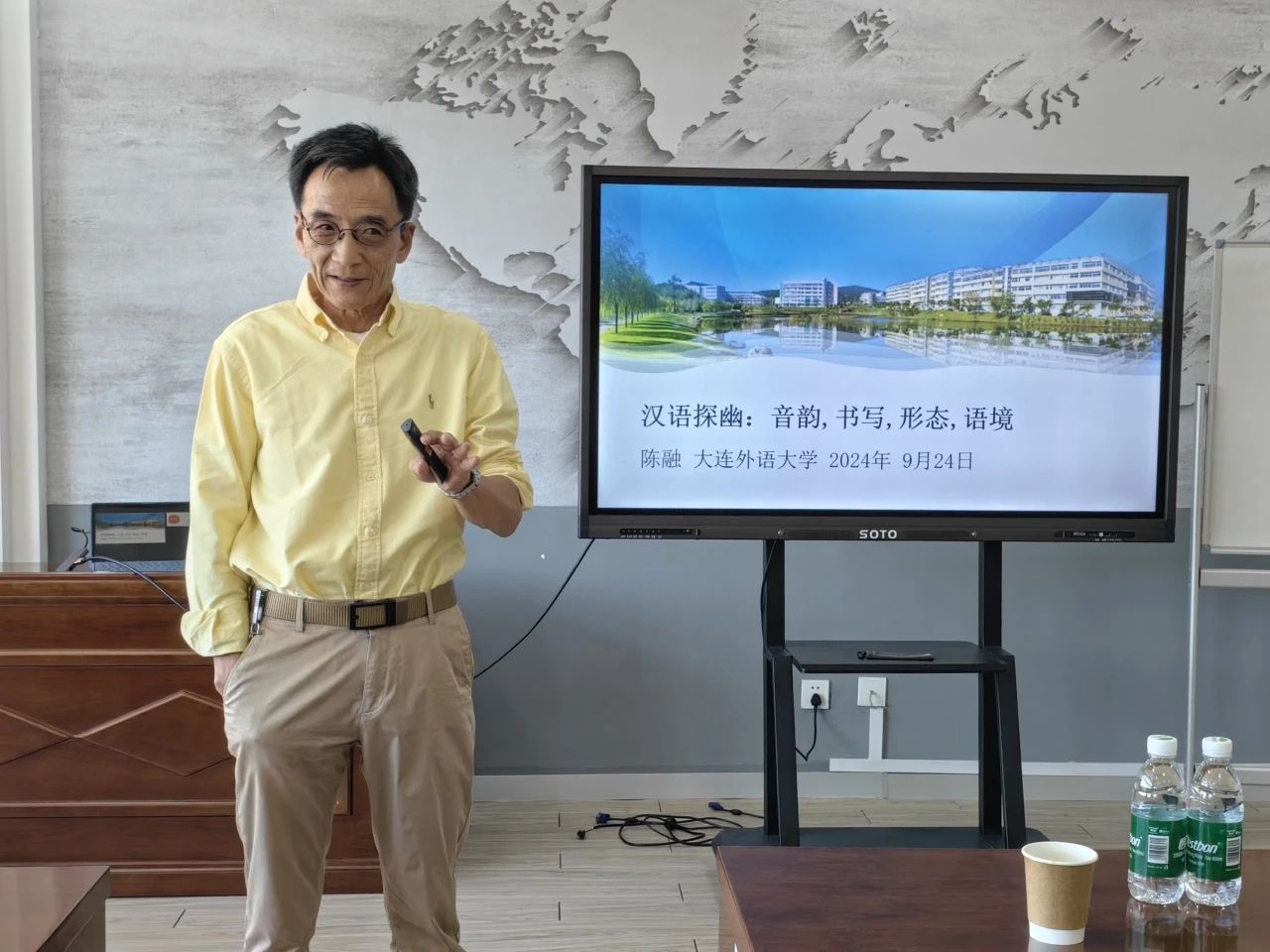 9月24日,大連外國(guó)語大學(xué)啟航學(xué)者、美國(guó)加州州立大學(xué)名譽(yù)教授陳融應(yīng)我校科研處和英語學(xué)院邀請(qǐng),在勵(lì)業(yè)樓愛爾蘭研究中心為我院師生做了題為“漢語探幽:音韻,形態(tài),書寫,語境”的學(xué)術(shù)講座。本次講座由認(rèn)知語用多語種團(tuán)隊(duì)成員、韓國(guó)語學(xué)院陳艷平教授主持,副校長(zhǎng)劉風(fēng)光教授、認(rèn)知語用多語種團(tuán)隊(duì)部分成員、英語學(xué)院研究生及本科生參加了此次講座。