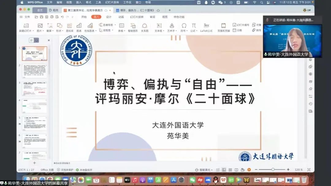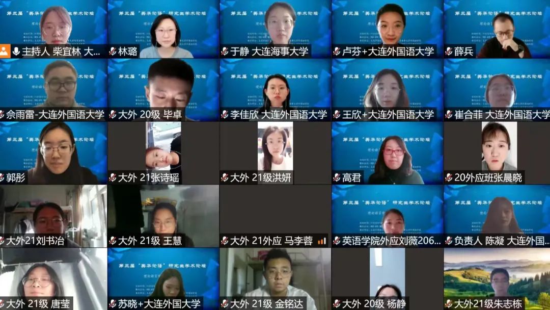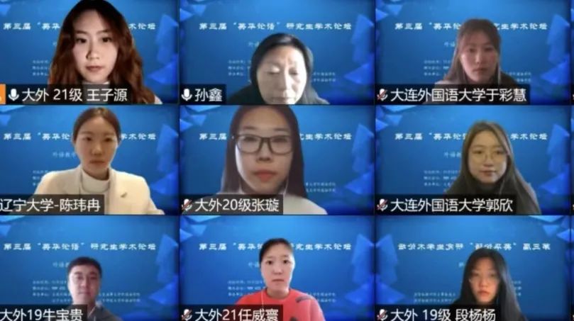 11月12日下午,大連外國(guó)語(yǔ)大學(xué)英語(yǔ)學(xué)院、大連海事大學(xué)外國(guó)語(yǔ)學(xué)院、遼寧大學(xué)外國(guó)語(yǔ)學(xué)院、遼寧師范大學(xué)外國(guó)語(yǔ)學(xué)院聯(lián)合舉辦的第三屆“英華論語(yǔ)”研究生學(xué)術(shù)論壇圓滿(mǎn)結(jié)束。本次論壇旨在貫徹落實(shí)習(xí)近平總書(shū)記關(guān)于研究生教育工作的重要指示精神,提升研究生創(chuàng)新學(xué)術(shù)素養(yǎng),增進(jìn)校際間研究生學(xué)術(shù)交流與合作,力圖為國(guó)家培養(yǎng)和儲(chǔ)備高層次創(chuàng)新型人才。本次論壇采用線(xiàn)上模式進(jìn)行,共設(shè)理論語(yǔ)言學(xué)、翻譯學(xué)、政治文本翻譯、文學(xué)(一)、文學(xué)(二)、外語(yǔ)教學(xué)六個(gè)分會(huì)場(chǎng),吸引了來(lái)自四所院校100多名研究生的積極參與。經(jīng)過(guò)專(zhuān)家評(píng)審,共有65名研究生進(jìn)行了線(xiàn)上發(fā)言。