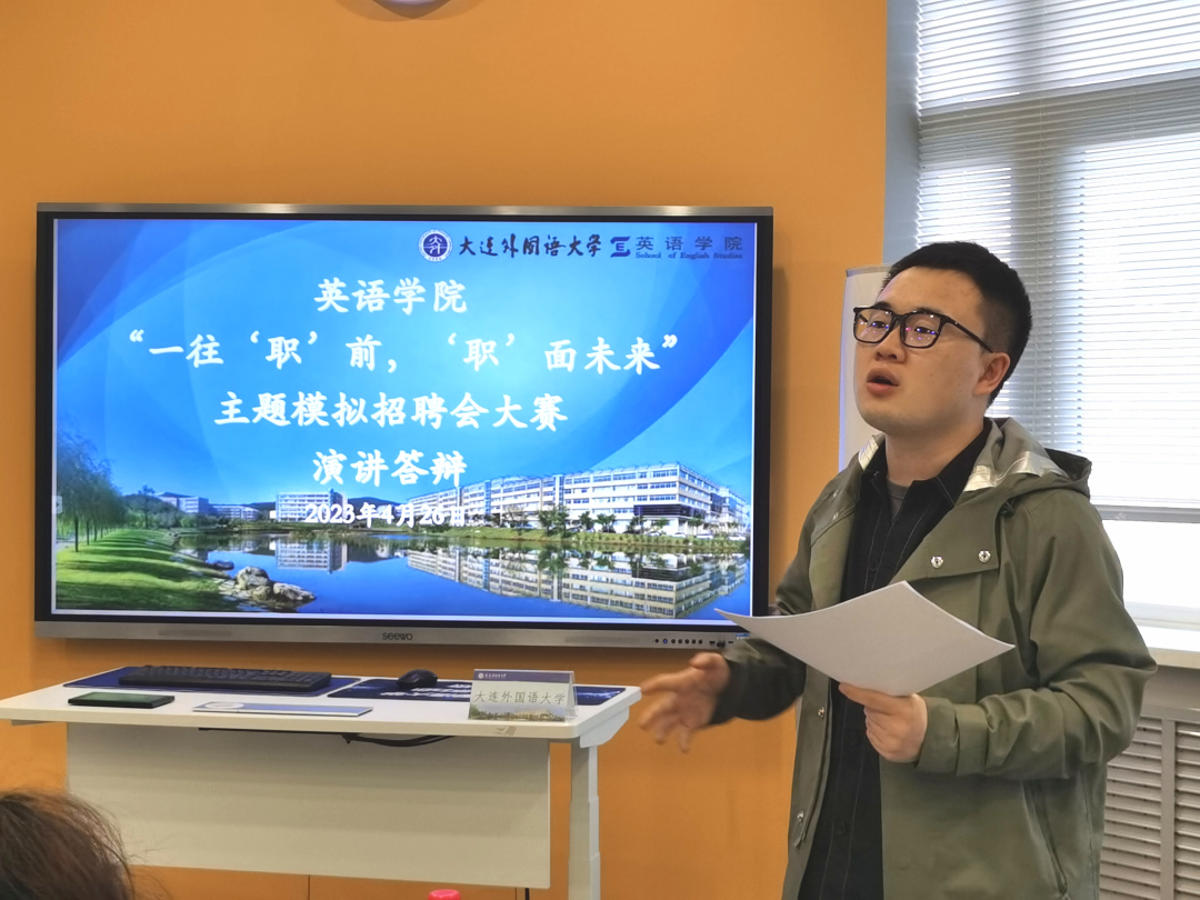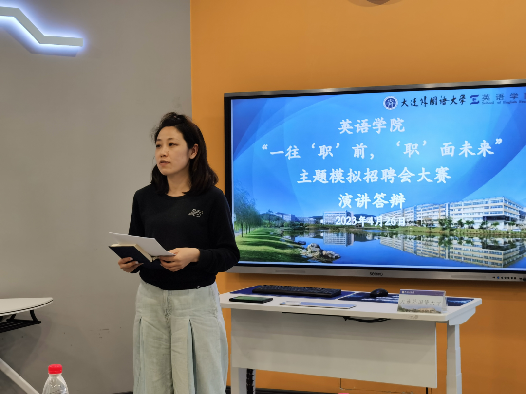 4月26日,“一往‘職’前,‘職’面未來”主題模擬招聘比賽的演講答辯環(huán)節(jié)于VR實(shí)訓(xùn)中心舉辦,特邀遼寧伯樂幫科技有限公司總裁張曉婷女士作現(xiàn)場點(diǎn)評(píng)與指導(dǎo),英語學(xué)院團(tuán)委書記曲鏡達(dá)、2019級(jí)輔導(dǎo)員吳曼、2020級(jí)輔導(dǎo)員王藝凝、2021級(jí)輔導(dǎo)員達(dá)尼亞爾江·亞力坤江共同擔(dān)任評(píng)委老師。