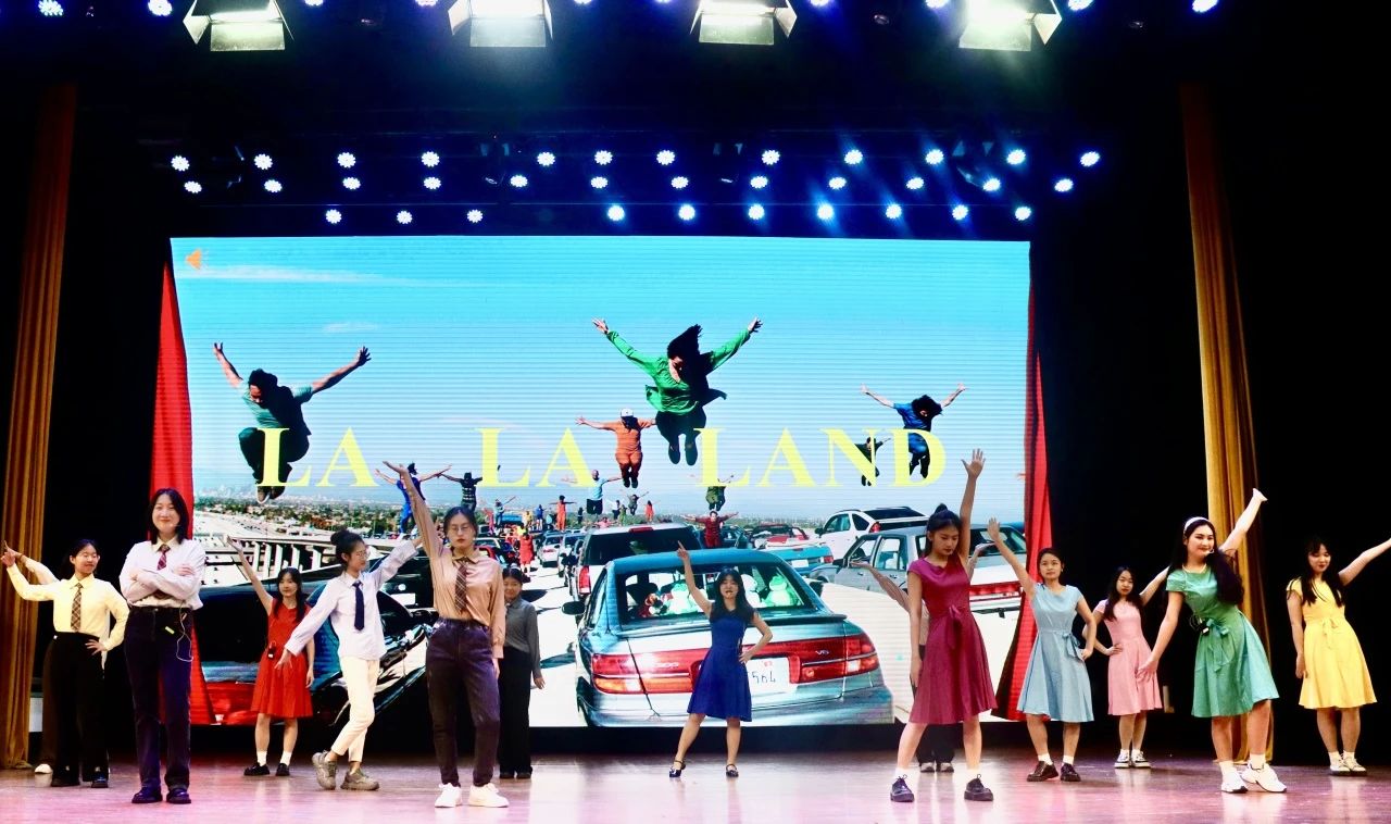 中場環(huán)節(jié)過后,研究生劇組表演了深受觀眾喜愛的劇目《愛樂之城》,描繪了爵士鋼琴家賽巴斯蒂安和女演員米婭在洛杉磯這個充滿夢想與機(jī)會的城市相識,在種種挑戰(zhàn)和抉擇面前鼓勵彼此勇敢追求自己夢想的故事。他們輕松愜意的表演風(fēng)格和歡快自在的舞臺呈現(xiàn)為本場演出增添了無限魅力。