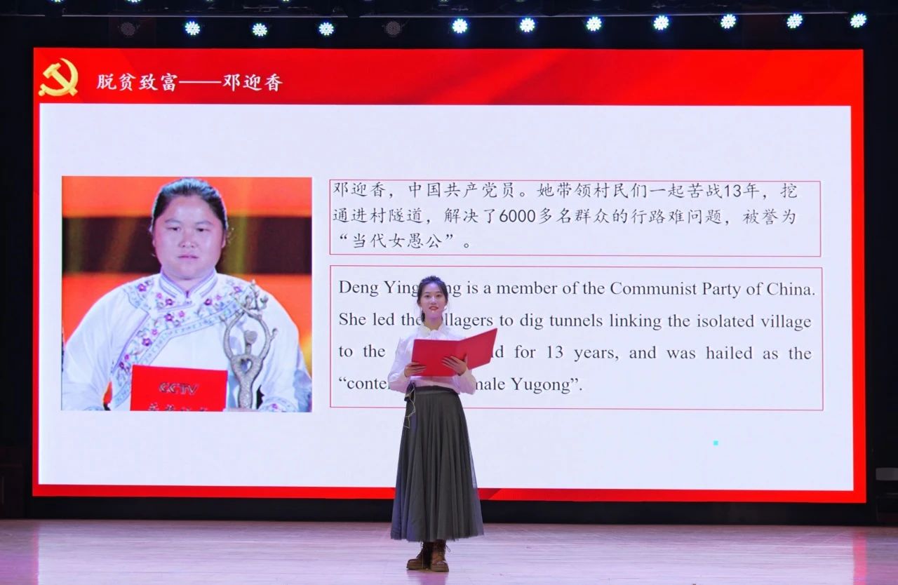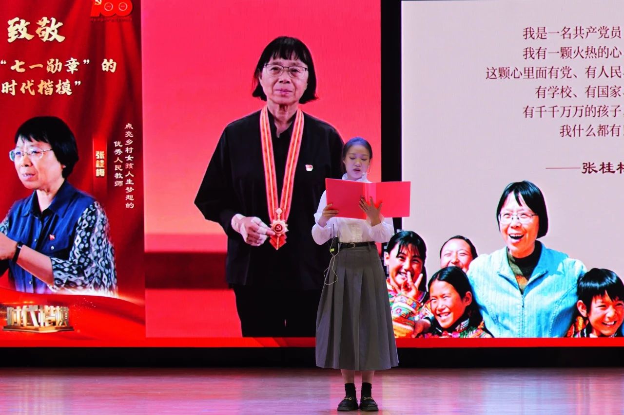 中場表演環(huán)節(jié)中,由蔣美軒、李昕睿、張依然、汪思齊、許博雅五位同學(xué)帶來的朗誦《中華兒女多奇志,巾幗風(fēng)華滿庭芳》講述了韋慧曉、鄧迎香、葉嘉瑩、張桂梅、葉叔華五個人物的感人事跡,向在各個領(lǐng)域為祖國無私奉獻(xiàn)的中華巾幗致以最崇高的敬意。