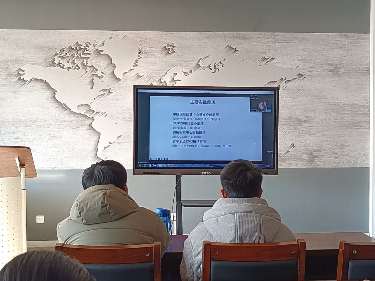 分享會(huì)伊始,王欣陽(yáng)同學(xué)和李可為同學(xué)通過(guò)線上方式分別講述了自己的口譯學(xué)習(xí)和實(shí)踐經(jīng)歷,為現(xiàn)場(chǎng)的同學(xué)們提出了多條實(shí)用的建議,同時(shí)鼓勵(lì)同學(xué)們通過(guò)不斷的學(xué)習(xí)來(lái)更加了解這個(gè)世界。
