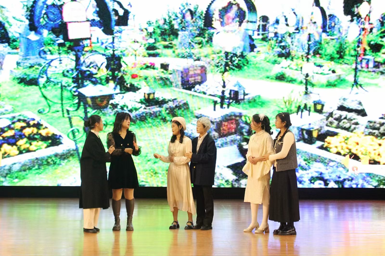 接下來2024級(jí)研究生外應(yīng)班劇組為我們帶來劇目《喜福會(huì)》片段,故事在瓊與維芙麗激烈的爭(zhēng)吵中拉開序幕,母親素媛為女兒瓊傳授人生道理,打開了女兒的心結(jié),在母親病逝后,瓊帶著母親送她的羽毛踏上尋親之旅。觀眾們緊跟演員的步伐,感受瓊跌宕起伏的人生,在演員們?nèi)橥度氲难堇[之下感悟女性在命運(yùn)面前的掙扎與覺醒。