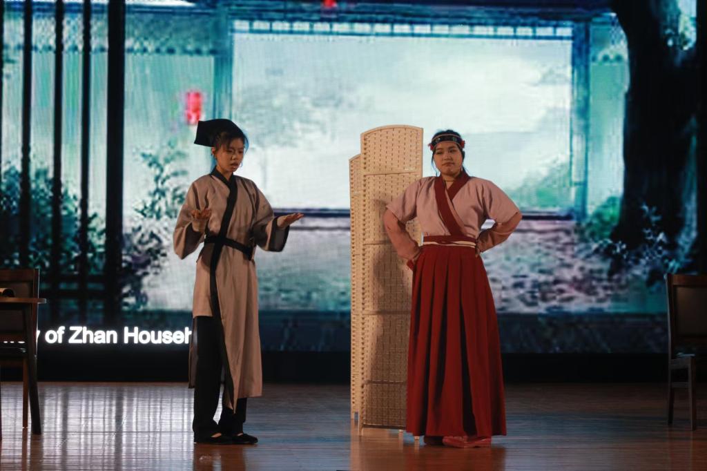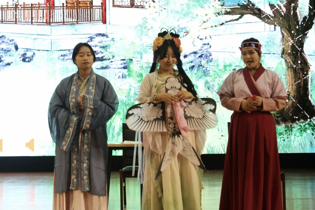 最后由戲劇社帶來經(jīng)典劇目《風(fēng)箏誤》的傾情演繹。本劇講述了詹家小姐淑娟與書生韓世勛因一只風(fēng)箏結(jié)緣,卻因種種誤會(huì)而歷經(jīng)波折的故事。幽默詼諧的情節(jié)、古色古香的服飾道具以及那隨風(fēng)飄揚(yáng)的風(fēng)箏都讓觀眾仿佛置身于充滿詩(shī)意與浪漫的時(shí)代,在歡笑中感受古代文化的獨(dú)特韻味。