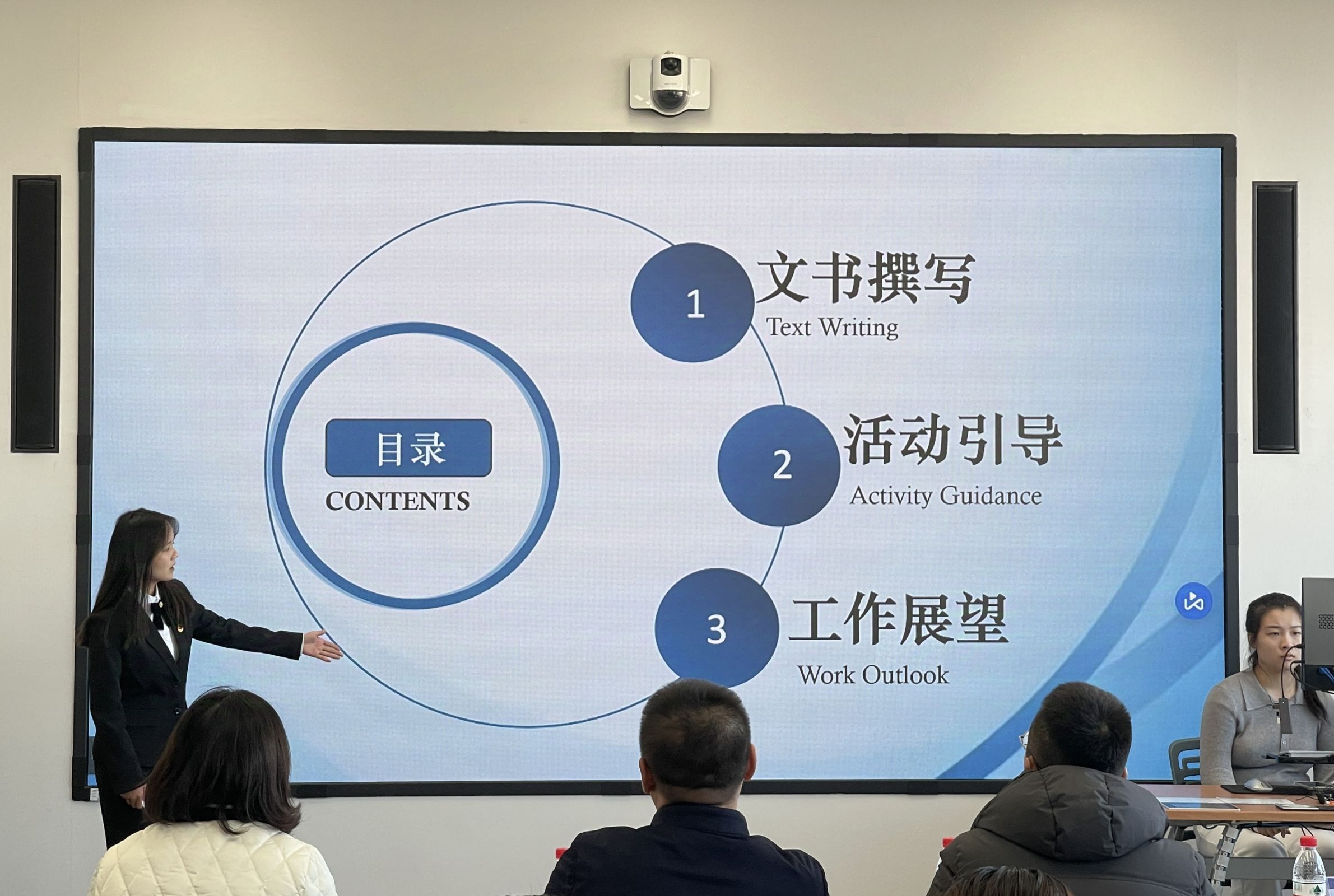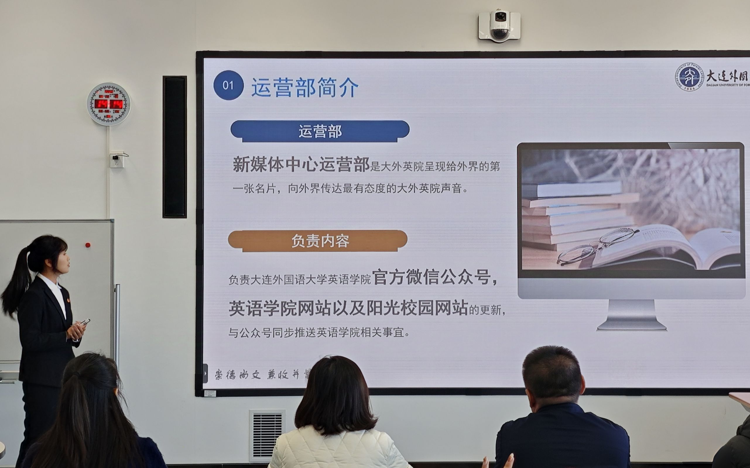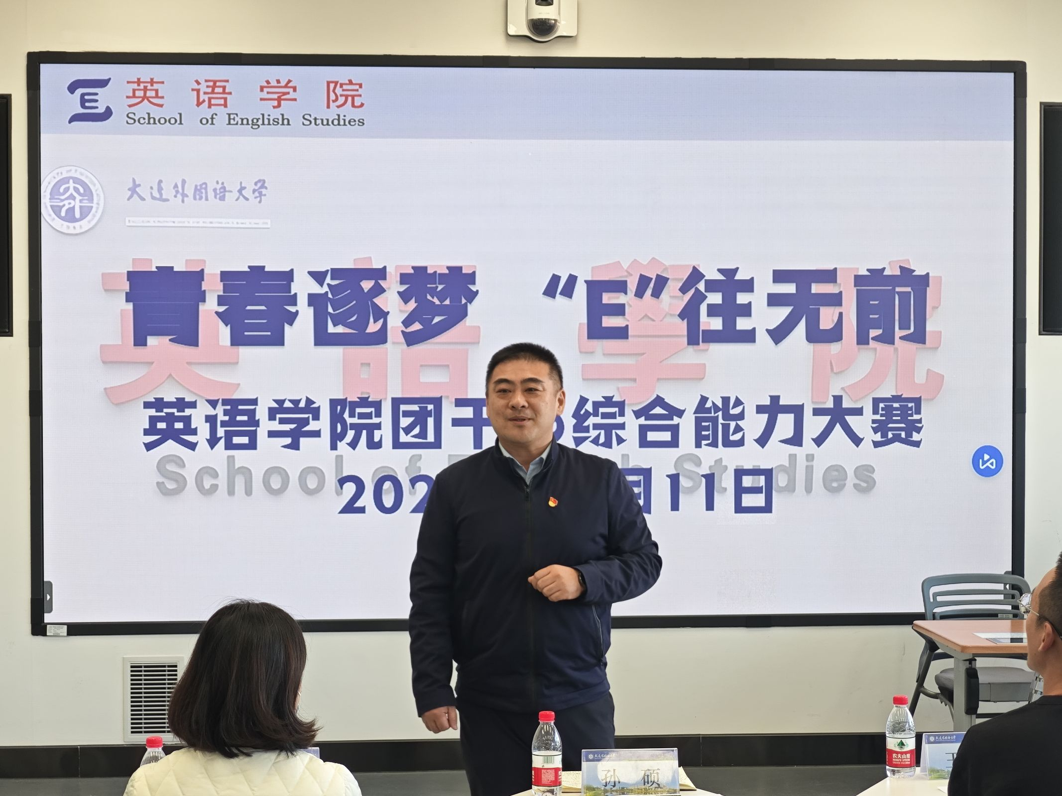 大賽接近尾聲,大連交通大學機械工程學院團委書記王衍對此次比賽進行了簡單回顧與總結,并提出兩校學生干部相互學習、相互進步的美好愿景。在公布各組分數(shù)后,英語學院黨委副書記兼紀委書記孫碩向遠道而來的評委老師們表示衷心感謝,并對參與本次比賽的選手們給予了高度評價與認可,他期望英院學子們能夠不斷完善自我,充分利用好當下的資源,繼續(xù)為英語學院作出貢獻。