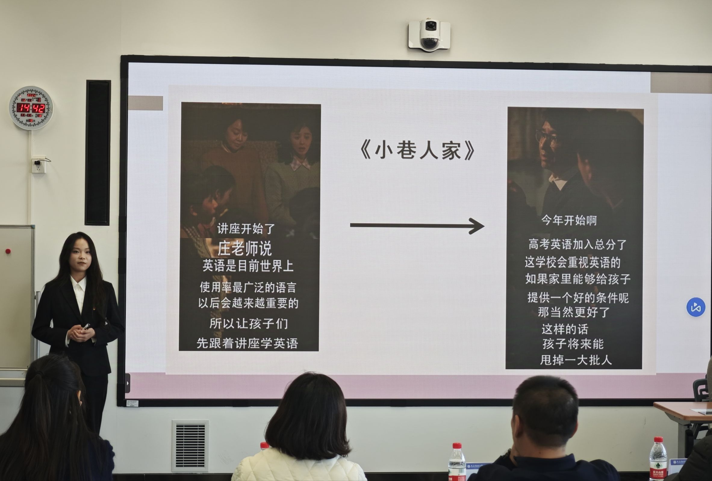 決賽由工作匯報、命題演講、即興演講三個環(huán)節(jié)構成。在工作匯報環(huán)節(jié),參賽者們以其精心制作的PPT與自信大方的表現(xiàn),充分展現(xiàn)了他們的個人綜合能力以及對部門工作的獨到理解;命題演講環(huán)節(jié)中,選手們分析了大數(shù)據(jù)環(huán)境下我們所面臨的機遇和挑戰(zhàn),并提出應對挑戰(zhàn)的具體策略;接下來的即興演講環(huán)節(jié)綜合考察了選手們面對突發(fā)狀況時的應變能力,展示出英語學院團干部的業(yè)務水平和綜合素質。