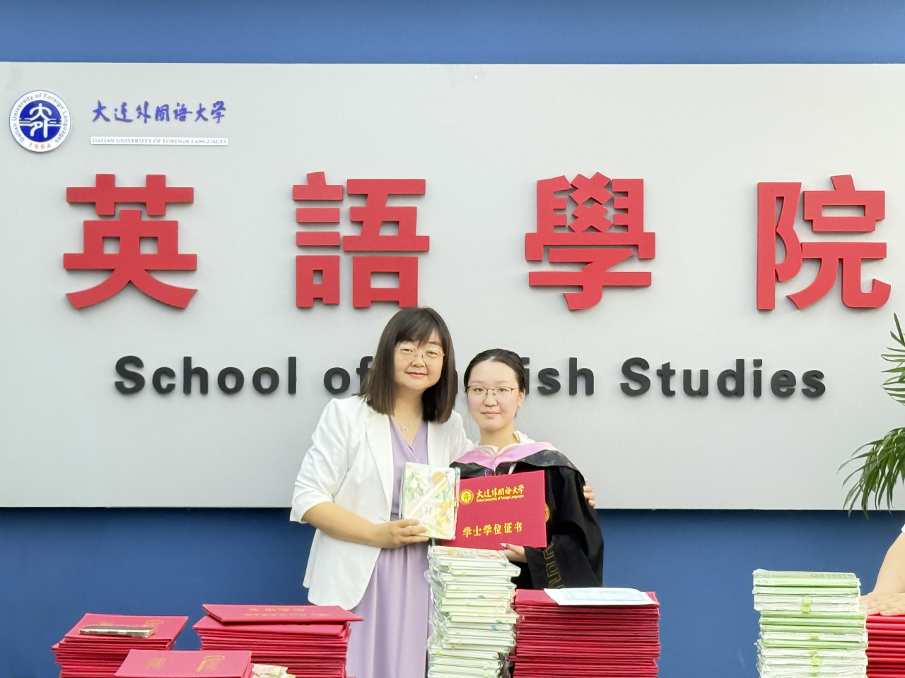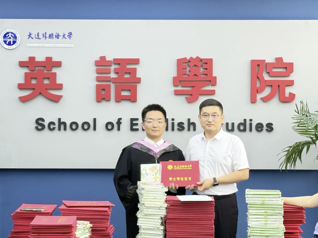 蟬鳴漸起,又逢一年畢業(yè)季。6月19日,英語學院舉辦2025屆畢業(yè)紀念活動,為畢業(yè)生逐一發(fā)放承載青春與榮光的畢業(yè)證書、學位證書、輔修證書以及定制版畢業(yè)禮物。英語學院黨委書記梁若冰、院長呂春媚、黨委副書記兼紀委書記孫碩、副院長劉曉暉、副院長羅俏鵑、副院長王成東等各位老師蒞臨現(xiàn)場表示祝賀,共同見證這一重要時刻。