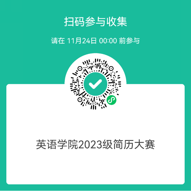 電子版簡(jiǎn)歷請(qǐng)以PDF格式提交至群收集小程序,掃描下方二維碼參與收集