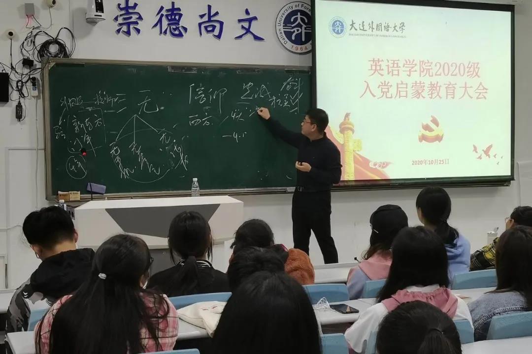 為鼓勵(lì)同學(xué)們學(xué)習(xí)黨的先進(jìn)理論,積極向黨組織靠攏,10月25日晚,我院在明德樓舉辦了2020級(jí)新生入黨啟蒙教育大會(huì)。本次大會(huì)由英語學(xué)院黨委副書記梁若冰主講,2020級(jí)輔導(dǎo)員王藝凝及英語學(xué)院2020級(jí)新生共同參加。