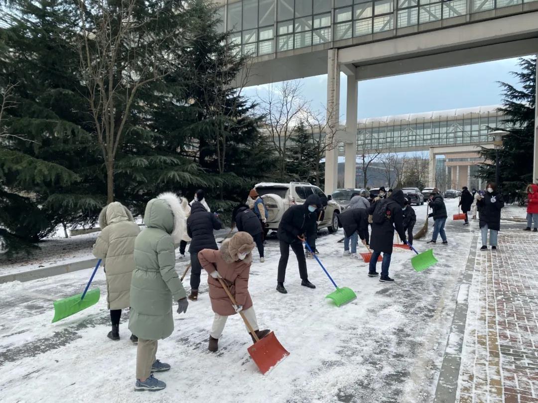 大雪如期而至,校園里一片銀裝素裹。為解決厚重的積雪為我校師生日常出行和通勤帶來(lái)的極大不便,12月30日下午,英語(yǔ)學(xué)院本科生黨支部書記曲鏡達(dá)老師、教工黨員達(dá)尼亞爾江?亞力坤江老師和李延奇老師與英語(yǔ)學(xué)院本科生黨支部全體學(xué)生黨員一起開(kāi)展除雪活動(dòng)。