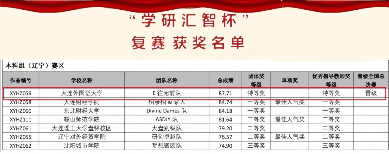 2024年9月20日,在英語學(xué)院陸文玥老師的指導(dǎo)下,由李孟容、張翼鷺、董峻豪、亢美霏、李文超、雷攀云六名同學(xué)組成的英語學(xué)院代表隊(duì)榮獲第四屆“學(xué)研匯智杯”全國高校商務(wù)外語綜合能力大賽(微視頻作品賽項(xiàng))省級(jí)復(fù)賽遼寧省賽區(qū)特等獎(jiǎng),并最終晉級(jí)國賽,為六十周年校慶獻(xiàn)出來自英院學(xué)子的賀禮。