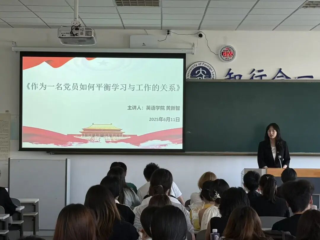 在第十講的課堂上,英語學(xué)院研究生黨支部書記黃新智為入黨積極分子們帶來了《作為一名黨員如何平衡學(xué)習(xí)與工作之間的關(guān)系》專題課程,她向同學(xué)們剖析了黨的理論指引與實(shí)踐成長之間的緊密關(guān)聯(lián),助力在座入黨積極分子明晰如何有效統(tǒng)籌理論汲取與實(shí)際行動(dòng)、提升綜合素養(yǎng)。黃新智老師指出,理論聯(lián)系實(shí)際是黨的優(yōu)良作風(fēng),同學(xué)們要扎實(shí)開展理論學(xué)習(xí),積極投身實(shí)踐鍛煉,培養(yǎng)務(wù)實(shí)擔(dān)當(dāng)精神,強(qiáng)化服務(wù)群眾本領(lǐng)。最后,黃新智老師以視頻形式啟發(fā)入黨積極分子們要善于鉆研理論、勇于實(shí)踐探索,不斷增強(qiáng)知行合一能力,努力實(shí)現(xiàn)學(xué)用相長,踐行新時(shí)代青年的責(zé)任使命。