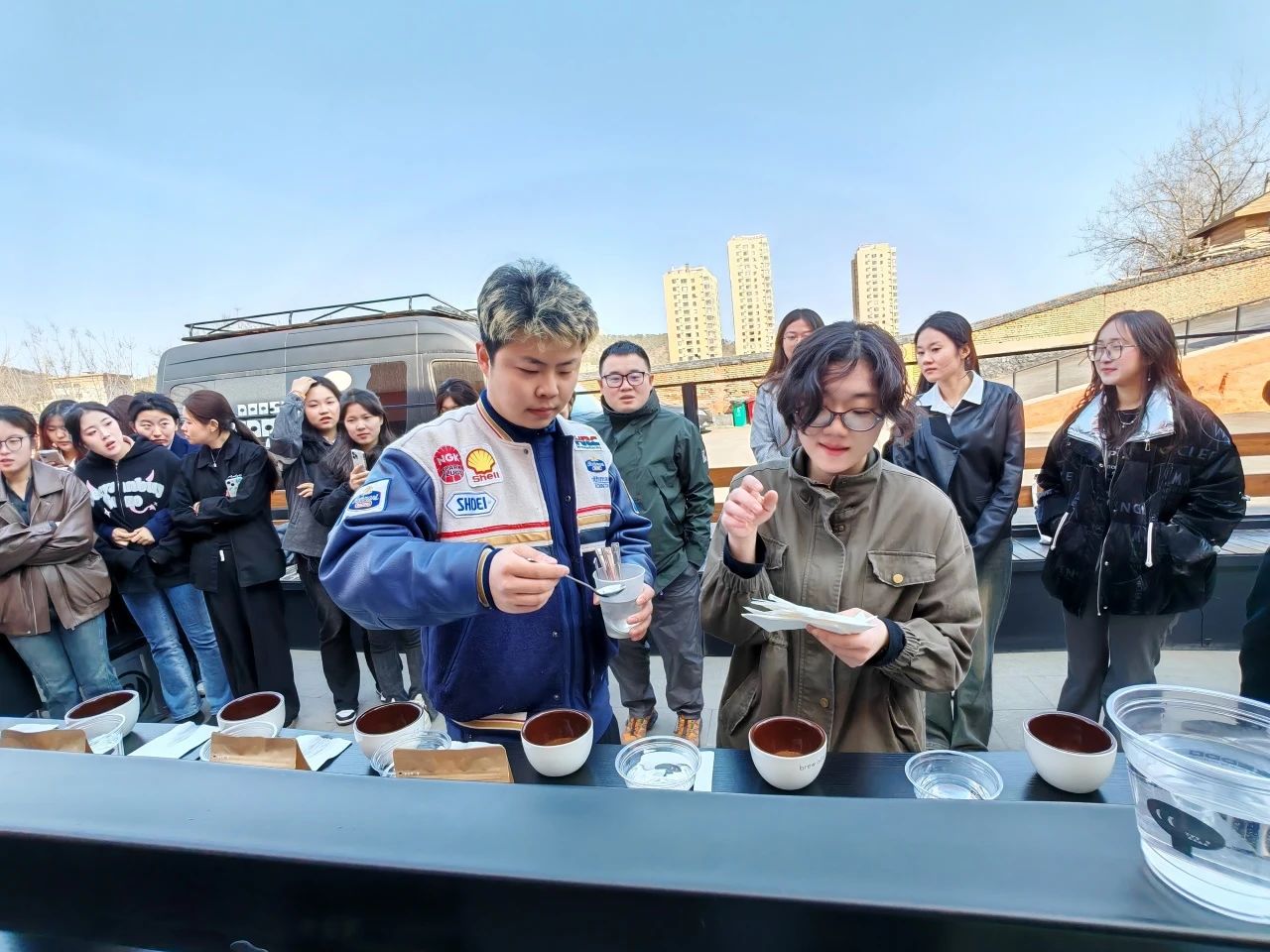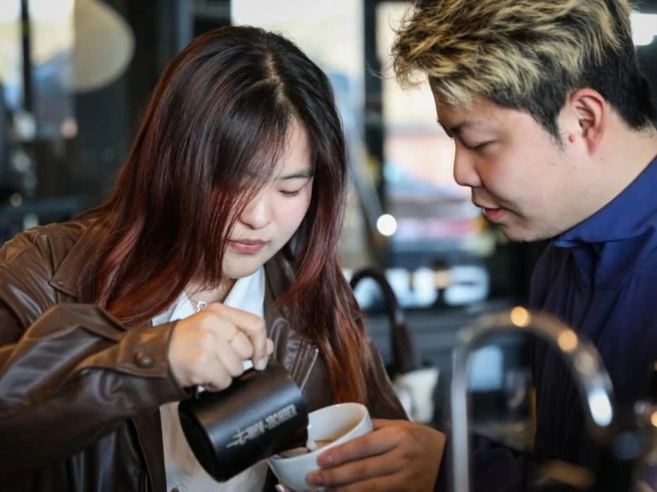 比賽之余,同學(xué)們在咖啡師的悉心指導(dǎo)下學(xué)習(xí)了咖啡的拉花技巧。同時,大家還發(fā)揮創(chuàng)意,進(jìn)行了命題創(chuàng)作,將紙杯繪制成精美的藝術(shù)品。活動即將結(jié)束時,大家合影留念,定格了這難忘的時刻。