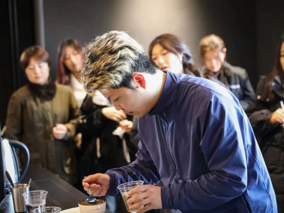 正式進(jìn)入到杯測環(huán)節(jié)時,通過聞干香、注水、撈渣、聞濕香、高中低溫啜吸品嘗等步驟,同學(xué)們親身感受到了不同產(chǎn)地、海拔高度、咖啡處理法等等因素賦予咖啡豆的獨(dú)特風(fēng)味。