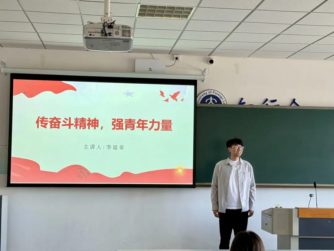 在第三講的課堂上,英語(yǔ)學(xué)院2022級(jí)輔導(dǎo)員李延奇老師為同學(xué)們帶來(lái)“傳奮斗精神,強(qiáng)青年力量”專(zhuān)題課程。課上,李延奇老師帶領(lǐng)同學(xué)們回顧了習(xí)近平總書(shū)記對(duì)新中國(guó)成立以來(lái)人民奮斗歷程的總結(jié),深刻強(qiáng)調(diào)了當(dāng)代大學(xué)生發(fā)揚(yáng)奮斗精神的重要性。隨后,李延奇老師列舉數(shù)個(gè)新時(shí)代的奮斗事例,生動(dòng)闡釋了奮斗精神的踐行方式與現(xiàn)實(shí)意義。最后,李延奇老師進(jìn)一步探討了個(gè)人價(jià)值與社會(huì)價(jià)值的辯證關(guān)系,號(hào)召在座學(xué)子積極踐行新時(shí)代的奮斗精神,將個(gè)人價(jià)值的實(shí)現(xiàn)與社會(huì)發(fā)展的目標(biāo)結(jié)合在一起,懷揣理想信念之炬,照亮民族復(fù)興之路。