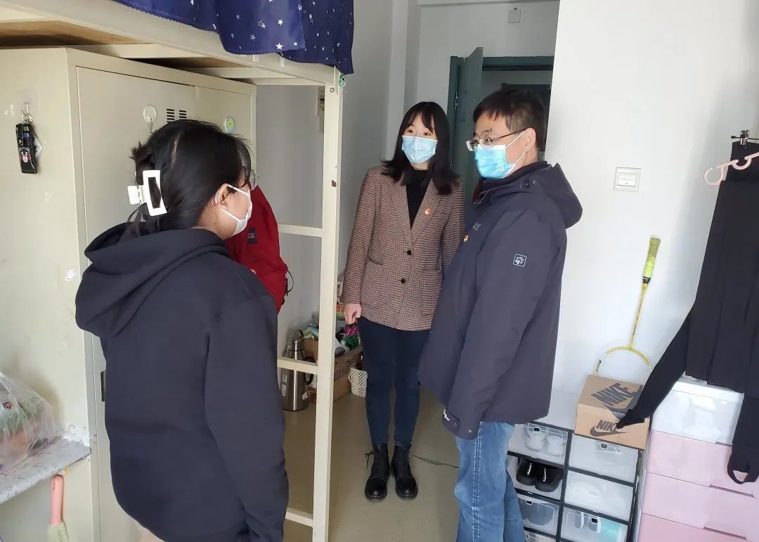 曲院長首先感謝北樓搬寢研究生對(duì)學(xué)校疫情防控工作的支持、配合與理解,指出在校期間遇到任何困難與問題可以隨時(shí)向?qū)W院反映,學(xué)院會(huì)第一時(shí)間為同學(xué)們排憂解難。走訪過程中,曲濤副院長與同學(xué)們親切交談,傾聽他們的心聲,深入了解同學(xué)們的學(xué)習(xí)情況、心理和生活狀況、在校生活需求等;同時(shí)希望同學(xué)們在疫情特殊時(shí)期,保持良好作息及心態(tài),堅(jiān)持健康飲食,重視體育鍛煉,務(wù)必做好健康管理,監(jiān)測體溫變化,嚴(yán)格落實(shí)好學(xué)校、學(xué)院疫情防控的各項(xiàng)要求。研究生輔導(dǎo)員黃新智老師提醒在疫情防控常態(tài)化背景下,每位同學(xué)都要遵守學(xué)校防疫規(guī)定,繃緊疫情防控之弦,提高個(gè)人安全防護(hù)意識(shí)。