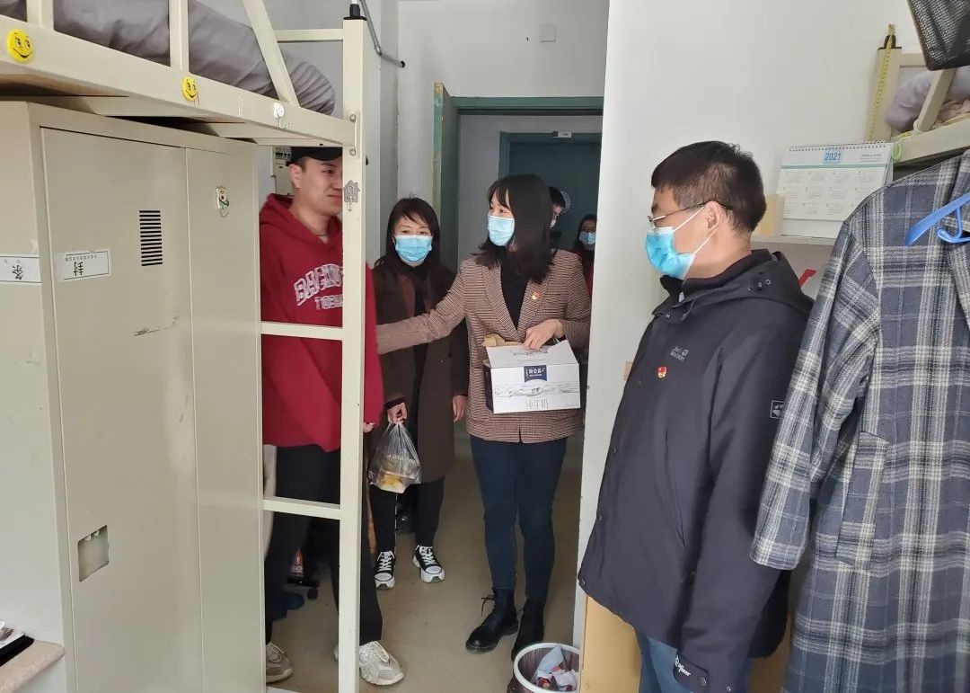 為落實(shí)學(xué)校疫情防控的各項(xiàng)措施,全面了解疫情期間北樓研究生搬寢后的學(xué)習(xí)和生活狀況,英語學(xué)院曲濤副院長、研究生輔導(dǎo)員黃新智老師以及徐璟鋒老師帶領(lǐng)英語學(xué)院“疫中人”黨員先鋒隊(duì)研究生黨員于3月28日對(duì)26、28號(hào)樓研究生寢室進(jìn)行了走訪慰問,并給同學(xué)們帶來了暖人心小禮物。