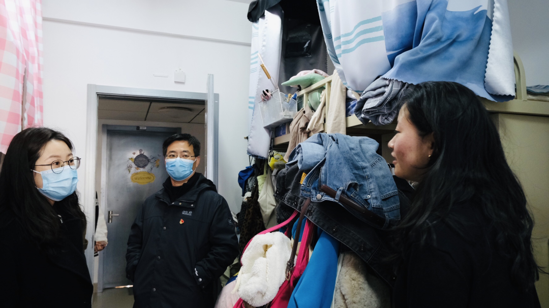 走訪過程中,領(lǐng)導(dǎo)老師們深入到學(xué)生寢室內(nèi),與同學(xué)們進(jìn)行了親切友好的交流。在與交流談話過程中,老師們詳細(xì)地了解了同學(xué)們線上學(xué)習(xí)、寢室生活、身心健康等方面的情況,并囑咐同學(xué)們要保持寢室內(nèi)整潔的生活環(huán)境,形成良好作息習(xí)慣和生活習(xí)慣,注意學(xué)習(xí)中的勞逸結(jié)合,保持身心健康。此外,老師們表示,為了有效做好疫情防控工作,學(xué)校按照大連市疫情疾控中心的相關(guān)要求,采取了相應(yīng)的管控措施,調(diào)整了上課時間,以確保校園內(nèi)防疫措施的嚴(yán)謹(jǐn)細(xì)致和同學(xué)們學(xué)習(xí)生活的井然有序,希望同學(xué)們在確保自身安全和良好的生活學(xué)習(xí)狀態(tài)的同時,積極配合學(xué)校的各項安排,為當(dāng)前的防疫工作獻(xiàn)出自己的一份力量。