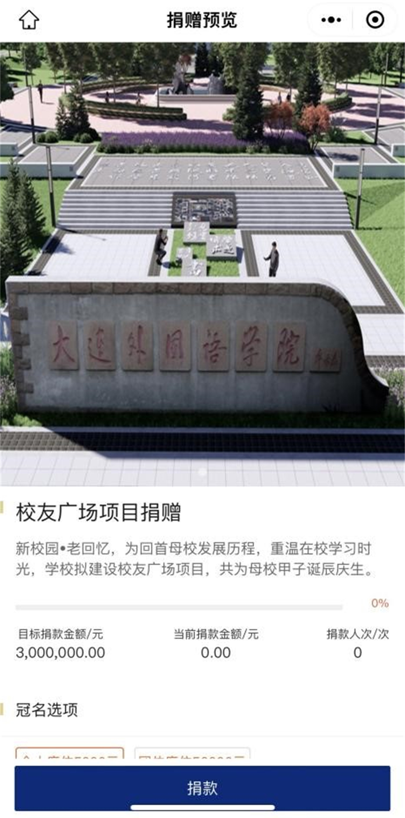 2.在大連外國(guó)語(yǔ)大學(xué)校慶官網(wǎng)上同步發(fā)布捐贈(zèng)項(xiàng)目的消息,利用網(wǎng)站宣傳捐助項(xiàng)目;