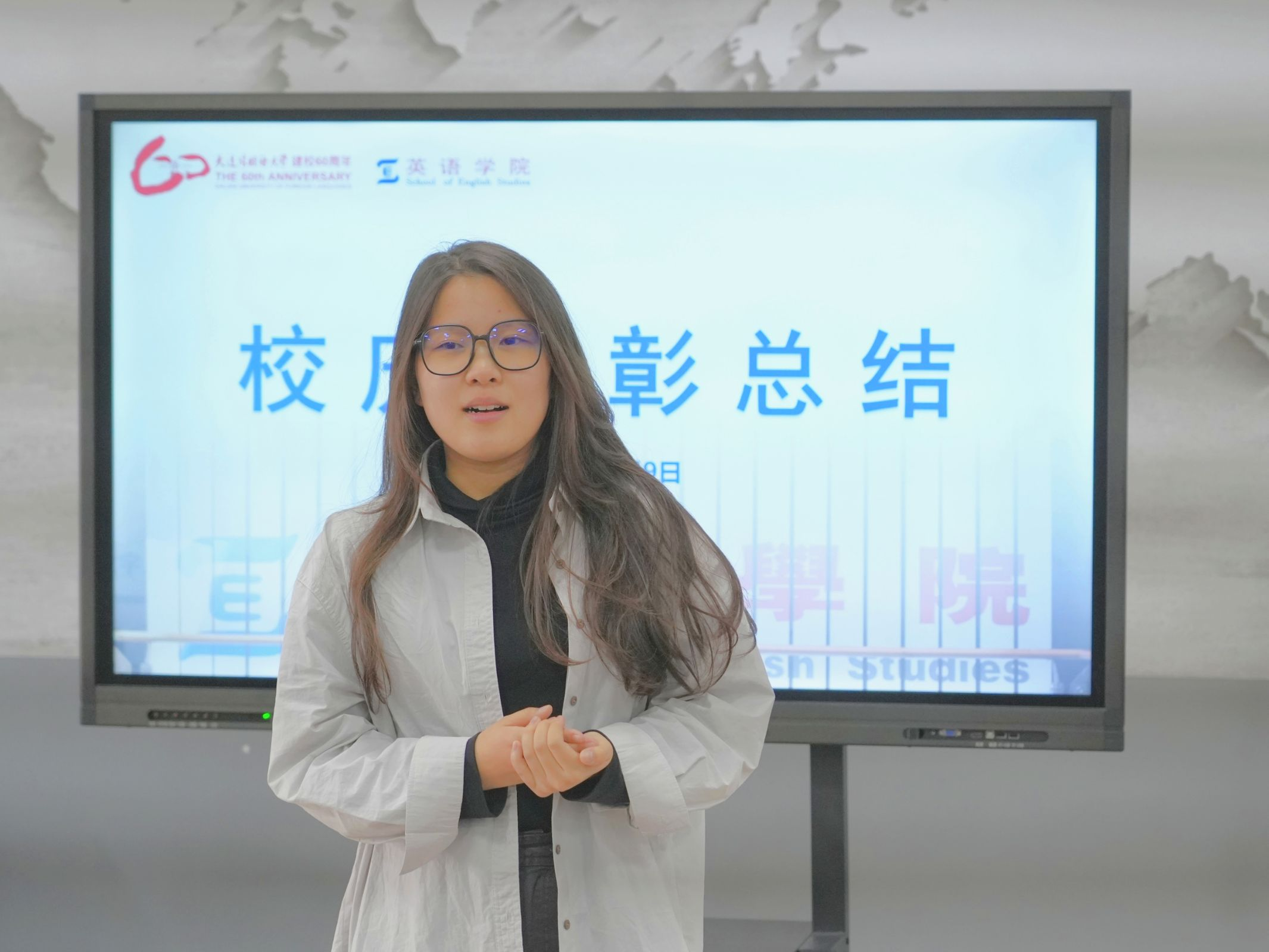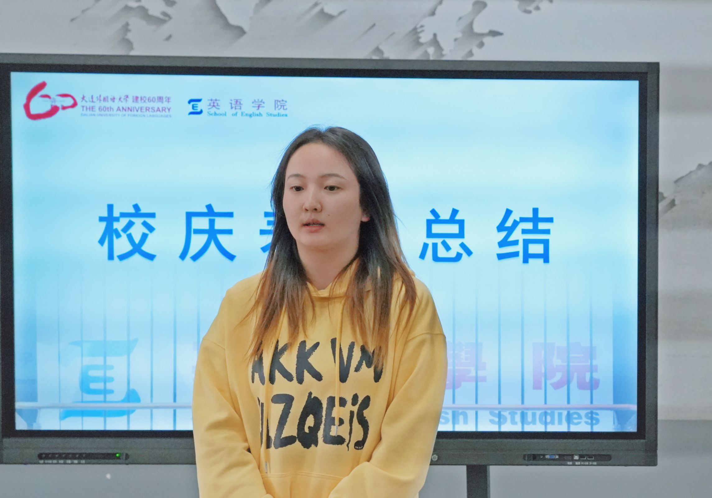 隨后,英語(yǔ)學(xué)院團(tuán)委學(xué)生組織各部門代表從前期籌備、后期推送、志愿者服務(wù)等方面總結(jié)了各部門在校慶工作中的心得體會(huì)與收獲成長(zhǎng)。孫碩副書記表示,校慶工作不僅展示了英語(yǔ)學(xué)院全體師生凝心聚力的良好品質(zhì),更是對(duì)學(xué)院綜合實(shí)力、組織管理能力和師生精神風(fēng)貌的一次檢驗(yàn),期待英語(yǔ)學(xué)院團(tuán)委學(xué)生組織成員能夠繼續(xù)堅(jiān)持服務(wù)同學(xué)的宗旨,為學(xué)生工作注入更多新活力與新動(dòng)力。