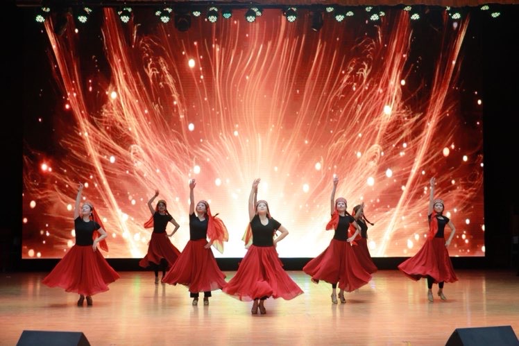 嘉年華的第三部分“奔赴·星辰大海”在稍事休息后開展。少數(shù)民族風情濃厚的塔吉克舞蹈《恰普素孜》展現(xiàn)帕米爾高原之美,熱血沸騰的rap《決愛·盡》、幽默詼諧的情景劇《后宮風云之皇上今天帶誰出宮》贏得掌聲雷動,由2025級輔導員達尼亞爾江·亞力坤江和2025級學生干部為大家?guī)淼母枨队形摇飞钌畲騽恿舜蠹遥蔑柡α康母杪晜鬟f出青年一代的責任與擔當,歌曲《愛情公寓+相親相愛》暖心動聽。至此,英語學院第三屆文藝嘉年華暨2025級新生迎新晚會在絢爛煙火中圓滿結(jié)束。